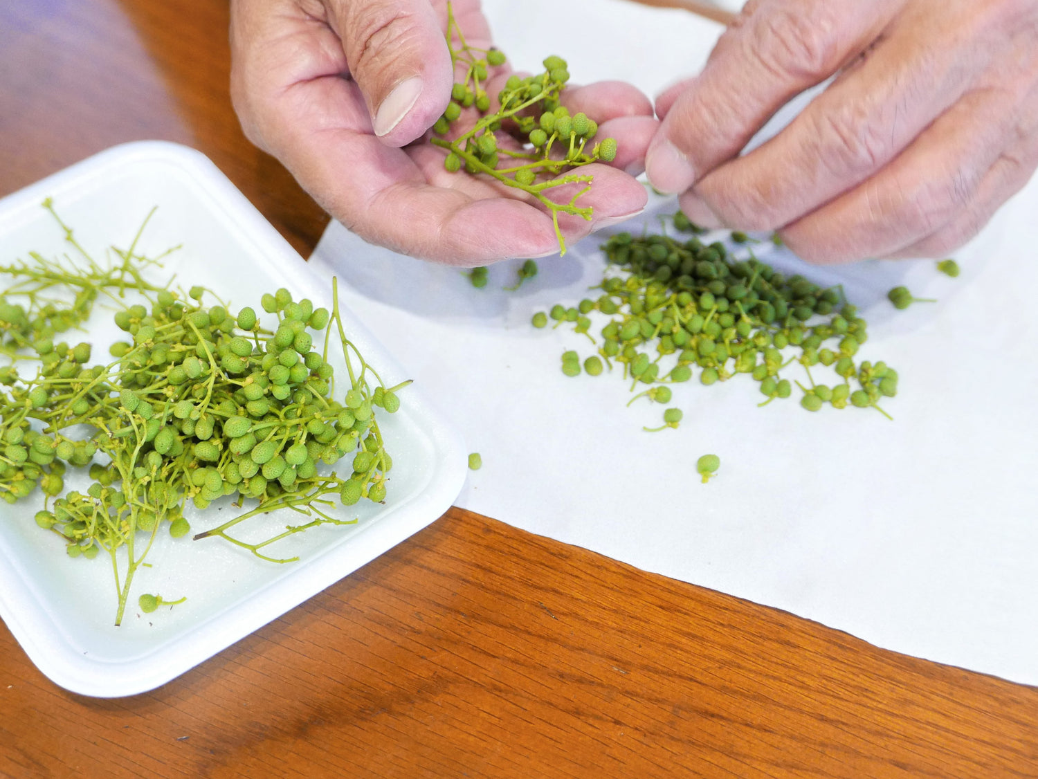 Budo Sansho grows plump like a bunch of grapes, has larger berries than other sansho, and has a thicker skin. Sansho is known for its strong fragrance, but Budo Sansho is particularly mellow. It contains linemon and geranyl acetate as aromatic components, and has a refreshing citrus-like scent as well as a sweet rose-like scent. The skin contains more medicinal ingredients than other varieties, and is characterized by a strong spiciness.
